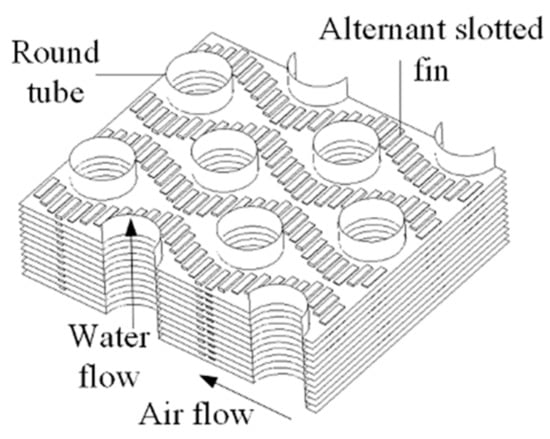 - Kong, Y.Q.; Yang, L.J.; Du, X.Z.; Yang, Y.P. Effects of continuous and alternant rectangular slots on thermal-flow performance of plain finned tube bundles in in-link and staggered configurations. Int. J. Heat Mass. Tran. 2016, 93, 97–107. [Google Scholar] [CrossRef]