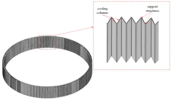 These air-cooled heat exchangers are composed of many cooling columns which are connected by support structures, as shown in Figure 3. Considering the axial-symmetrical structure of the tower and the air-cooled heat exchangers, only half of the tower and air-cooled heat exchangers is taken into account so that the computing resource and computing time could be saved.