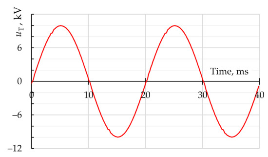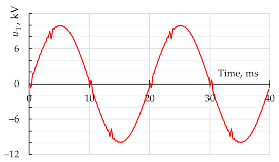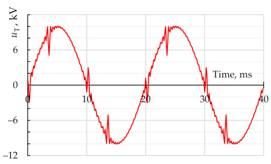 Voltage waveform of the secondary side of the transformer in the analyzed system.