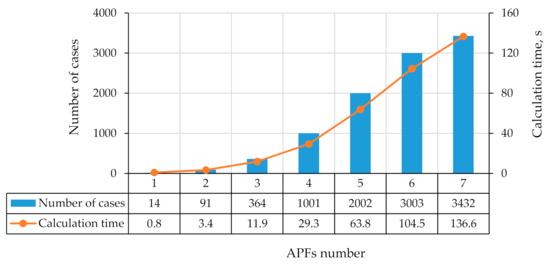Dependence of the number of cases and the calculation time of the brute force algorithm on the APF number.