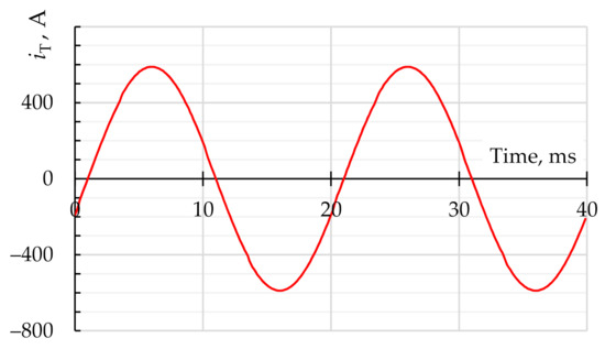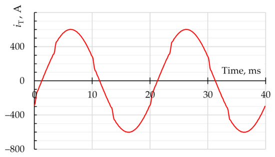 Current waveform of the secondary side of the transformer in the analyzed system.