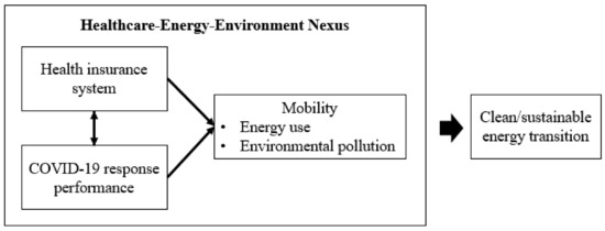 One of the policy issues related to the COVID-19 management is the provision of healthcare access, particularly to the marginalized populations who are more vulnerable to various health risks. For example, those who live in polluted areas are more likely to have COVID-19 confirmed cases or deaths [3,4]. Given that healthcare access is intertwined with health insurance systems, the COVID-19 crisis called attention to the role of health insurance systems. It was particularly true in nations with private health insurance systems (rather than public or universal health insurance systems). In the United States, for instance, redesigning its health insurance system recently aroused public opinion in battling COVID-19 [5]. It is also worth noting that health insurance systems determine the amount of medical resources, such as hospital personnel and medical space/supplies, which rely on energy [6].
