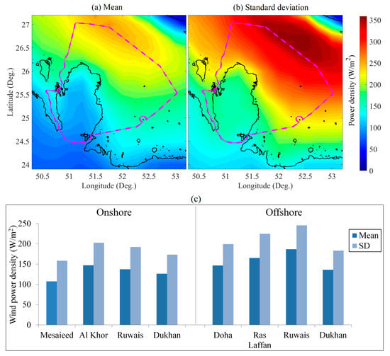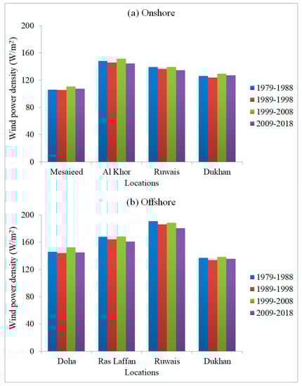 Long-Term Assessment of Onshore and Offshore Wind Energy Potentials of Qatar