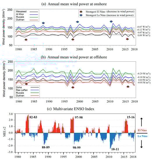 - Naizghi, M.S.; Ouarda, T.B.M.J. Teleconnections and analysis of long-term wind speed variability in the UAE. Int. J. Clim. 2016, 37, 230–248. [Google Scholar] [CrossRef]