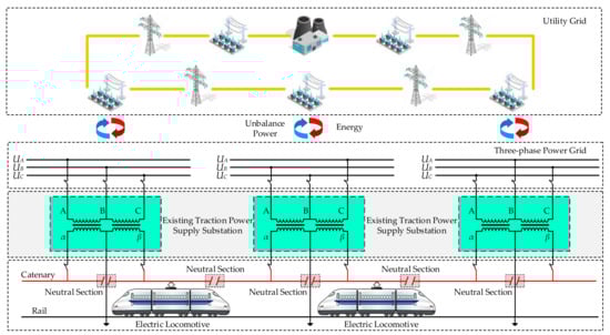 - Fang, L.; Xu, X.; Fang, H.; Xiao, Y. Negative-sequence current compensation of power quality compensator for high-speed electric railway. In Proceedings of the 2014 IEEE Conference and Expo Transportation Electrification Asia-Pacific (ITEC Asia-Pacific), Beijing, China, 31 August–3 September 2014; pp. 1–5. [Google Scholar]