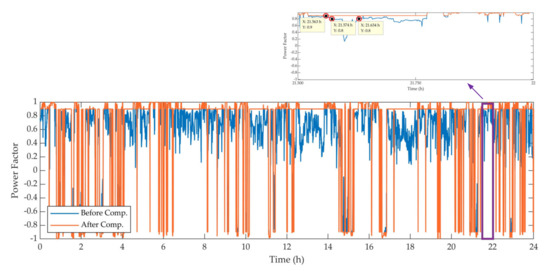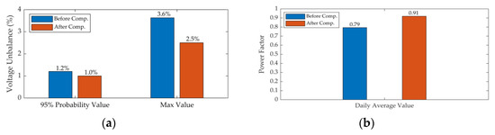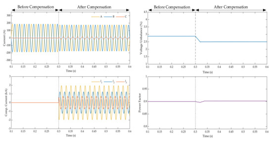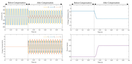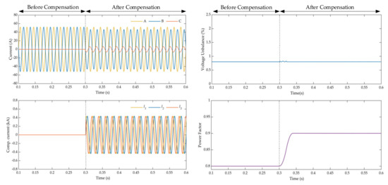 | After compensation | 63.26 kV | 0.51 kV | 0.8% | 0.9 |