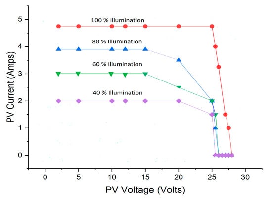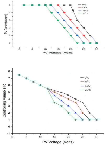 The VI and VR characteristics’ different ranges of illumination and PV temperature are shown in