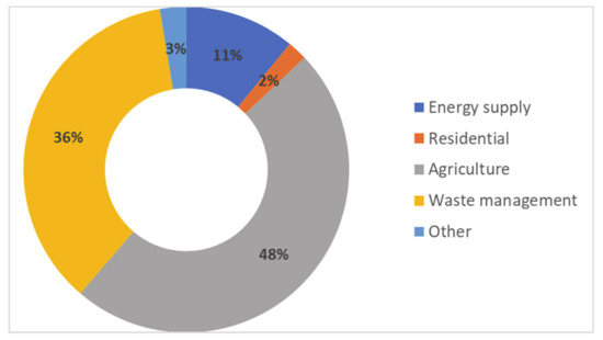 71] the potential for the use of farm animal waste and agricultural residues to produce biomethane to generate green electricity is reported, the authors conclude that a reduction of 0.6% of annual emissions could be achieved, avoiding emissions of ~4096 kt CO