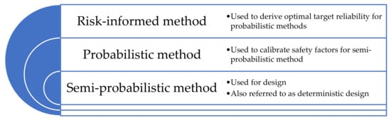 Probabilistic assessment methods also use probabilistic models and can be used directly for assessment against a given reliability level. They can also be used for calibration of partial safety factors for semi-probabilistic/deterministic assessment. Going down to a less-advanced method means generalization, and generally results in a higher variation of the reliability level and risk.