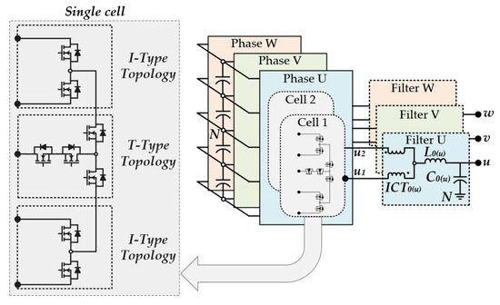 - Di Benedetto, M.; Lidozzi, A.; Solero, L.; Crescimbini, F.; Grbovic, P.J. Low Volume and Low Weight 3-Phase 5-Level Back to Back E-Type Converter. IEEE Trans. Ind. Appl. 2019, 55, 7377–7388. [Google Scholar] [CrossRef]