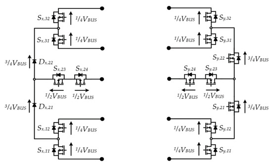 - Di Benedetto, M.; Solero, L.; Crescimbini, F.; Lidozzi, A.; Grbović, P.J. 5-Level E-type back to back power converters—A new solution for extreme efficiency and power density. In Proceedings of the 2017 13th Conference on Ph.D. Research in Microelectronics and Electronics (PRIME), Giardini Naxos, Italy, 12–15 June 2017; pp. 341–344. [Google Scholar]