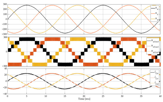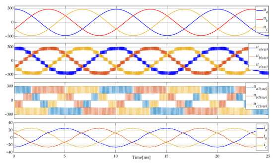 - Schrittwieser, L.; Leibl, M.; Haider, M.; Thöny, F.; Kolar, J.W.; Soeiro, T.B. 99.3% Efficient Three-Phase Buck-Type All-SiC SWISS Rectifier for DC Distribution Systems. IEEE Trans. Power Electron. 2019, 34, 126–140. [Google Scholar] [CrossRef]