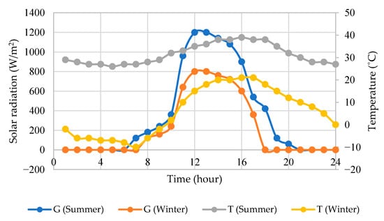 The hourly solar radiation and corresponding air temperature for summer and winter (Tehran, Iran).