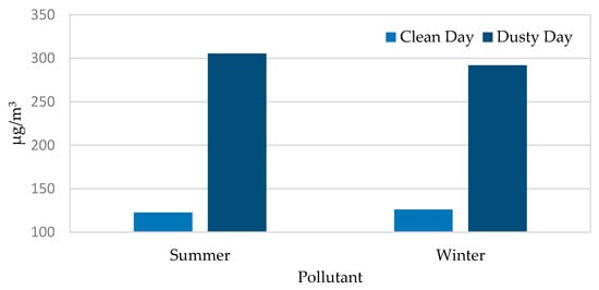 As noted in Section 3.3, weather change during the year not only affects the intensity of sunlight and air temperature, but also effects on the amount of dust particles in the air. The presence of particles in winter due to the air temperature inversion phenomenon is more than in the summer season. However, as shown in Figure 16, the results of the sampling in this paper indicate that in the clean days in the winter season, the particle concentration is higher than the summer season, while in dusty days, the concentration of particles in the summer season is more than the winter season.