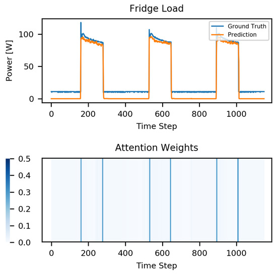 The tailored attention mechanism inserted into the regression branch of the network allows us to correctly identify the relevant time steps in the signal and generalize well in unseen houses. Furthermore, modeling attention is particularly interesting from the perspective of the interpretability of deep learning models because it allows one to directly inspect the internal working of the architecture. The hypothesis is that the magnitude of the attention weights correlates with how relevant the specific region of the input sequence is, for the prediction of the output sequence. As shown in Figure 4, Figure 5, Figure 6 and Figure 7, our network is effective at predicting the activation of an appliance and the attention weights present a peak in correspondence of the state change of that appliance.