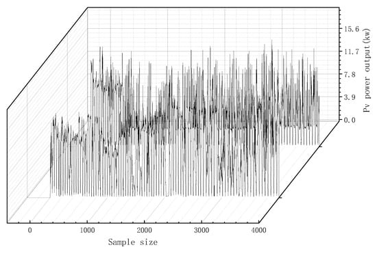 (1) Photovoltaic output is greatly affected by factors such as weather and irradiance, and it has a strong periodicity. The common output curve types are stable output type and non-stable output type. Figure 1 and Figure 2 show representative two Group data, respectively, as the specific description of these two types.