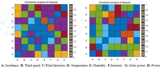 It can be obtained from the MIC result graph that in the two sets of data, the factors with strong nonlinear correlation include irradiance, humidity, temperature, and wind speed, so these factors are selected as the model inputs of this paper.