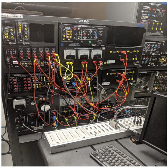 The dSPACE 1103 kit is composed of a control target, an input–output interface, and visualization software, among other components. The scheme of the wind turbine emulator is shown in Figure 2, while the workbench where the experiment was performed is shown in Figure 3. The wind turbine parameters are presented in Table 1 and the nameplate data and DC motor parameters are presented in Table 2.