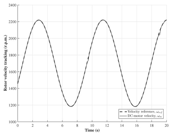 In this sense, some works regarding wind turbine emulators based on electrical machines have been reported in the specialized literature. In [1], a four-quadrant dynamometer is used, while the permanent magnet synchronous motor (PMSM) is applied in [2,3,4,5] and the induction motor is used in [6,7,8]. However, most emulators reported are based on the DC motor due to the flexibility in its operation and simplicity in the design and implementation of its control systems. In [9], a simple closed loop control based on the hysteresis band is presented. Fuzzy logic control techniques and first-order sliding modes are used in [10,11], respectively. Additionally, a classical PI control has been widely used to regulate the DC motor velocity [12,13,14,15,16,17]. This controller has some disadvantages such as high overshoot, sensitivity to the parameter variation, and maintaining a steady-state error. All previous reported controllers use a velocity sensor to solve the problem of velocity tracking, which raises the cost of construction and increases friction losses. In addition, velocity sensors reduce reliability due to the growth in the number of mechanical components.