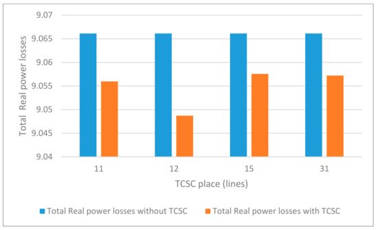 - Secondly, for the reactive power loss reduction method, the TCSC device should be located on a line that comprises the highest positive reactive power loss sensitivity index, .