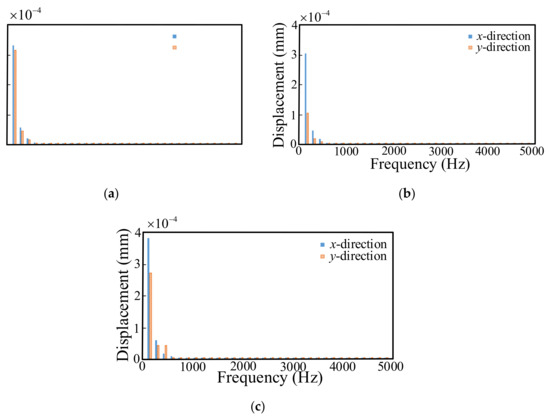 Vibration displacement of three motors under load at 3000 r/min. (a) PMa-BSynRM I; (b) PMa-BSynRM II; (c) BSynRM.