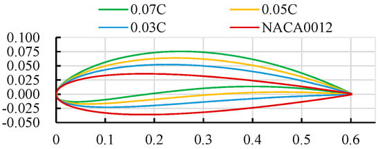 The numerical simulation method of the adaptive blades with active deformation as depicted in Section 3.1 shares the same settings as that of the traditional fixed blades. In this paper, the NACA0012 airfoil is chosen for the following calculation as it is one of the most used in the literature.