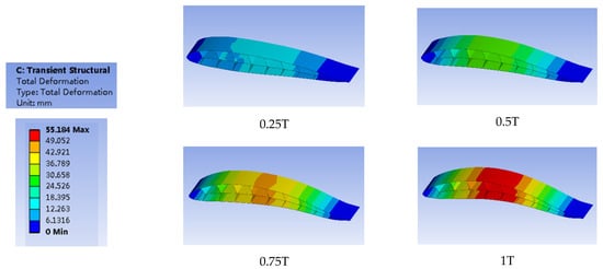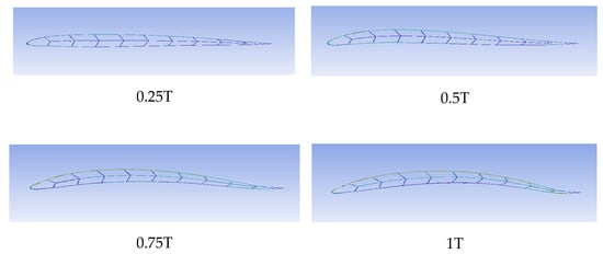 Deformation of the fish skeleton airfoil’s structure in one cycle with the Young’s modulus of 1 Mpa.