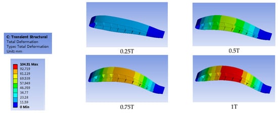 Deformation of the fish skeleton airfoil’s structure in one cycle with the Young’s Modulus of 2 Mpa.