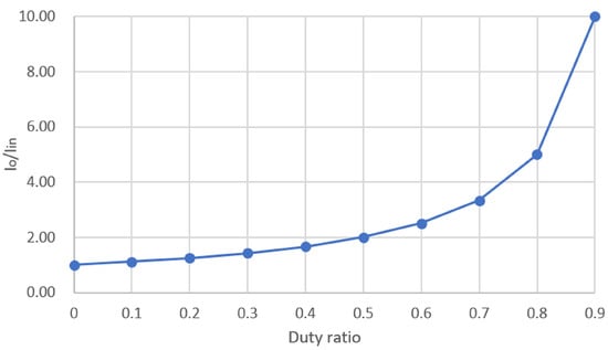Characteristic of the Conventional Boost current converter, the Current gain with duty ratio of conventional boost current converter.