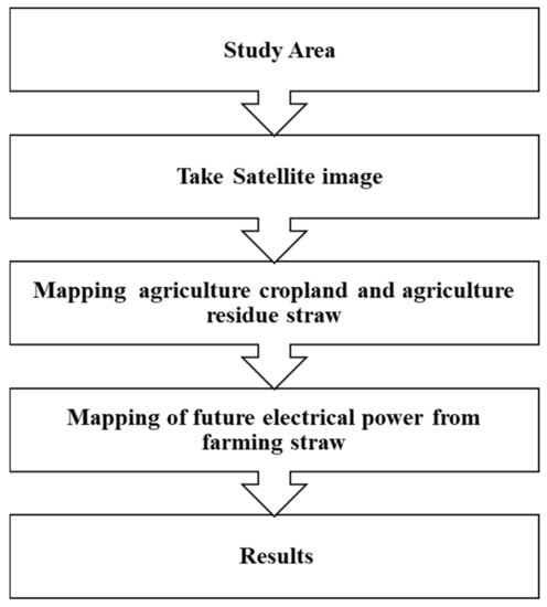 GIS has been successful and is well known in several fields of study, such as resource conservation, ecosystem evaluation, analysis of habitats, planning of land use sites, environmental disaster monitoring, etc. Because of some distinct benefits of geospatial technologies across modern techniques (e.g., data collection, survey), the use of spatial instruments is gaining popularity. Most satellite data are available free of charge (e.g., Landsat imagery), and are easily acessible. GIS can prove to be a decisive tool for assessing the status and planning of the area’s renewable energy assets, and the cost-effective use of such resources. For biomass energy studies, a broader application of the geo-spatial technique is most popular. Agricultural leftovers such as rice straw must be accepted as a potential feedstock for bioenergy production. Rice is primarily cultivated in various portions of India, providing a huge quantity of grain. It is estimated that India is producing 22 million tons of rice straw with an annual surplus [1]; large amounts of straw are left in the waste field or burned in several parts of the country. There is a greater concern in two cases: (i) the release of methane while the left out straw remained ungrabbed and was permitted to decompose in the field and (ii) the discharge of atmospheric contaminants (carbon monoxide etc.) when burned in the open. Therefore, in addition to its potential for renewable energy production, straw management is also relevant from an environmental point of view. Pitiable power sources categorized by common power cutting and voltage fluctuation are common features of rural India, while more than two-thirds of the people live in rural areas and it is estimated that approximately 78 million people rely on kerosene lamps for light in India [2]. Due to the lack of reliable, accessible electricity sources, the Indian government needs to start a rural national level program, with traditional grid-connected power supplies in several remote rural communities where it is almost impossible to access electricity. Thus, power generation utilizing a source of energy available locally seems to be a realistic choice in such areas. Insufficient electricity supply can be the main obstacle in development. Electricity shortages affect not only important household operations, but also industry, agriculture, health, and education systems. Due to poor electricity supply, small rural businesses are also harmfully affected. When liquid fuel or energy is generated from renewable sources, ignition gases do not contribute to fossil fuel CO2 discharges. Therefore, the usage of agricultural waste for energy generation has positive effects on climate change. The present review takes account of the appropriate potential source of agricultural wastes for energy production. Biomass feedstock (e.g., agricultural residues) may contribute to meeting national and regional energy demands if used for clean energy production. Biomass, which is known as the carbon-neutral source of renewable electricity, has several advantages: it could be stored and used for various purposes if required, depending on the needs, conversion technology and economic viability in terms of water, electricity saving and biogas processing. One of the drawbacks is the cost of lorry transport and lower transformation efficiency than fossil fuels. Technologies for transforming biomass are proven to produce electricity and are commercially accessible. Biomass is commonly used in rural areas for old-style cooking purposes. Approximately 64% of the rural population makes use of biomass as a cooking fuel [3]. On another hand, it shows that agriculture residue is available in abundance and does not create any competetion with food to produce clean and renewable energy when used under suitable biomass conversion processes. Oil geopolitics, limited fossil fuel choices and ecological warnings have pushed India to seek clean energy options. Wind, solar, biomass, and small hydropower have been recognized as India’s leading fields of development in renewable energy. The country’s estimated grid-connected power potential consists of more than 87 GW of biomass, wind and small hydro. Solar varies from 20 MW/km2 to 30 MW/km2 [4]. The Ministry of New and Renewable Energy (MNRE)acknowledges the promise of the bioenergy generation. India has initiated many projects on biomass, promoting achievement. Estimates show that by 2031–2032, capacity generating power will have to be expanded to almost 800 GW from the current capacity of around 183 GW to meet the basic energy needs of its plant citizens, including all captive plants [5]. The demand for electricity has surpassed availability, thereby raising living standards. The restriction of the electricity supply has forced virtually all businesses, residential, institutional or industrial, to depend on furnace oil or diesel. The shortage of adequate rural energy has led to the use of kerosene on a large scale. Biomass assets remain comparatively uniform in terms of accessibility in India in relation to other renewable sources. A high-quality crop residue is produced in India and can be found via GIS. Figure 1 shows the methods to apply in GIS for estimating bioenergy potential.
