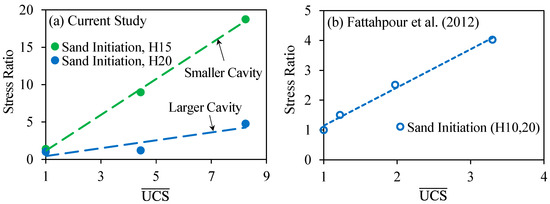 To study sand production in weakly-consolidated sandstones, Tronvoll et al. [21,22,23,24,25] conducted a series of experimental-numerical studies on the stability of the cylindrical cavities. Thick-Walled Hollow Cylinder (TWHC) samples were used in the experiments to mimic field sandstone around boreholes. They found that although mechanical instability is mainly responsible for sand production, the role of hydromechanical instability and fluid flow increases as the strength of sandstone decreases, and the sanding behavior gets more complicated for ultra-weak samples. They also reported that the sand initiation strongly relies on the Uniaxial Compressive Strength (UCS) of the samples, while it is independent of fluid flow conditions. In a similar study, Papamichos et al. [26] explored the effects of stress level and fluid flow on sand production in weak sandstones and found that increased applied stress leads to higher sanding rate and more produced sand. Papamichos [27,28] conducted further studies on the effect of perforation size, sample strength, and stress anisotropy on sand production. He reported that the cavity enlargement decreases the sand initiation stress, whereas stronger samples show higher sand initiation stress. Similar parameters were studied by Fattahpour et al. [2,3]. They recognized five distinct sand production stages in their experiments, including sand initiation, transient, semi-continuous, continuous, and catastrophic sand production. According to Fattahpour et al. [2], the stress level is responsible for each sanding stage, and as the stress level increases, higher sand volumes are produced. They also reported that stronger rocks are more sensitive to cavity enlargement than weaker ones. To study the effect of stress conditions and fluid flow on sanding, Younessi et al. [29] conducted a series of sand production tests using a true-triaxial stress cell. They argued that the shape of failure zones around the borehole is a function of stress anisotropy. They also observed that the sandstone yield occurs prior to the onset of sand production, and with the increase of stress level, the amount of produced sand and the yield zone dimensions around the borehole increase.