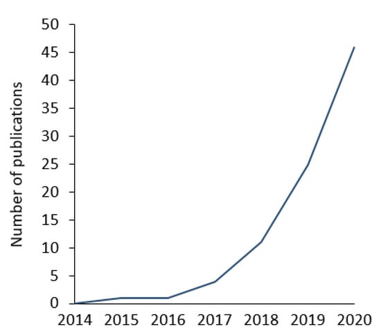 Number of publications between 2014 and October 2020 that include the term Power-to-X in the title, abstract, or keywords according to the literature database Scopus. Excluding not relevant publications as P2X term stands also for P2X7 and paclitaxel.