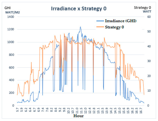 The global horizontal irradiance (GHI) and the correspondence in strategy 0.