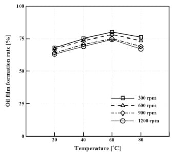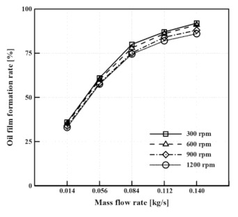 Oil film formation rate according to the mass flow rate at 60 °C.