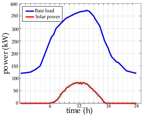 Figure 7 illustrates the base-load and solar power generation of the EV charging station in a summer typical day. Table 3 presents the grid TOU parameters. Based on these probability distributions for EV, the simulation data are obtained via the Monte Carlo method to test and verify the effectiveness of the algorithm for dynamic charging/discharging scheduling. Therefore, to a certain degree, though the driver’s habits, weather and meteorological conditions during the statistical period may influence both loading and fuel consumption, these factors have been comprised in the probability distribution functions.