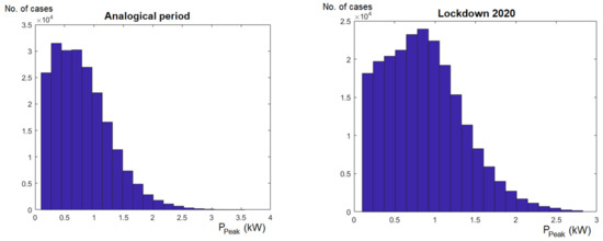 The statistical parameters concerning the peak values of power consumption by residential users from the analysed set in the lockdown and the analogous period before the pandemic are summarised in Table 1.