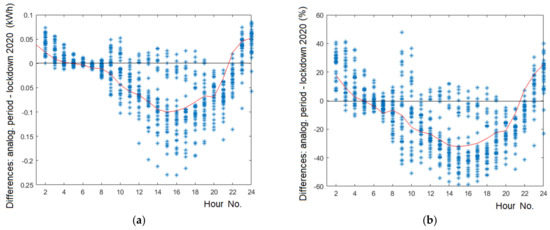 - Comparison of the average residential electricity consumption during the lockdown and the corresponding pre-pandemic period.