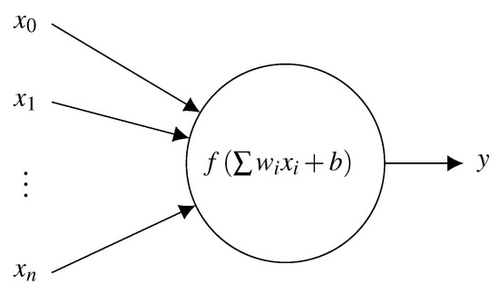 Multi-Layer Perceptrons (MLP) are one of the most simple artificial neural networks. They consist on a series of nodes or neurons organised in fully connected layers. One node in an intermediate layer is connected to the nodes of the previous layer and produce a result by applying a function (activation function) to the values that are obtained from those nodes. The activation function is applied to the sum of each incoming connection multiplied by a weight and an overall bias, being the weights and biases of the full networks the parameters that must be adjusted by a training process (trainable parameters). For the present work, the rectified linear unit activation function was used for the neurons’ internal activation function. Figure 7 contains a schematic representation of a neuron.