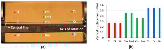 (a) The location of the points selected for DIC analysis, (b) Upward displacement of the points.