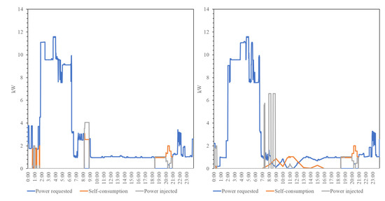 Energy self-sufficiency, perceived as the ability of an energy system being able to run autonomously from the power grid, brings benefits for both consumers and the power system [1,6,14]. This is indeed one of the main motivations for end-users to be engaged in such projects, alongside with the economic benefits [15]. Several terms are used in the literature with a similar meaning of ‘energy self-sufficiency’ [16], as ‘energy autarky’ [17,18], ‘energy autonomy’ [1,19] and ‘energy self-reliance’ [1]. The energy self-sufficiency of renewable-based LEC can be achieved by managing local power generation, storage and demand, taking advantage of the flexibility of power utilization profiles [1,20]. Currently, LEC are mainly created by groups of grid-connected private households, located nearby, owning small-scale photovoltaic (PV) systems [9]. Although the drop in prices of PV in recent years has triggered the dissemination of these systems and the emergence of prosumers, this technology is progressively being complemented with storage systems, both static and mobile (as electric vehicle batteries), for maximizing residential self-consumption due to the time lag between the periods of solar radiation availability and the residential consumption patterns [21]. Demand-side management (DSM) programs can be exploited to encourage end-users to modify their electricity utilization patterns, in combination with energy storage [22]. In general, changes in consumption patterns are triggered by price signals (tariff schemes are designed to penalize consumption in grid congestion periods and less renewable energy availability), end-users’ behavioral changes or automated control over loads [23]. The benefits of DSM programs are two-fold: end-users may reduce their energy bills by adjusting the timing and amount of electricity utilization, while the energy system can benefit from the shifting of consumption from peak to non-peak hours, reducing congestion. In this setting, building on the definition of ‘prosumer’ (energy producers and consumers), the ‘prosumager’ concept has emerged, introducing also the storage activity [24]. Prosumagers may make the most of storage devices to use their self-produced energy in periods of no PV availability or peak grid prices, thus minimizing costs. These systems can also be used to store energy purchased from retailers or other prosumers during low pricing periods, to be self-consumed later, providing an extra source of demand flexibility [25].