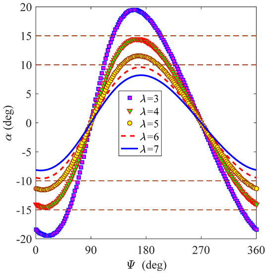 One can see from the above analysis that the angle of attack always satisfies the following equation: