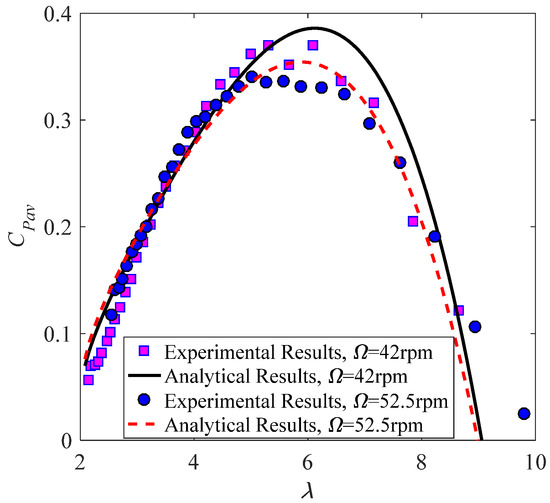 Comparison of experimental and analytical results for the power coefficient.
