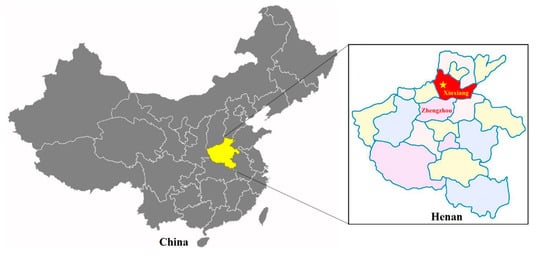 Zhaogu No.1 coal mine is located in Xinxiang, Henan Province, China. The geographical location of the mine is shown in Figure 3. Its annual output is 4 Mt. The development of a single level (−525 m) with a vertical shaft is adopted. Inclined slice, fully mechanized longwall mining methods are used at 16011 mining panel, which advances along the strike. Naturally, the caving method is chosen to manage the roof behind the shields. At present, the coal seam being mined is a 2-1 coal seam, where the average thickness is 5.8 m and the average dip angle is 2.5°. The coal seam occurrence is stable and the geological structure is simple.