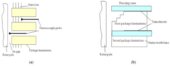 Examples of thermocouple installation: (a) in each stator channel; (b) between packages of laminations.