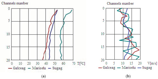 At the HGs from the power plants Gâlceag and Mariselu, in the first stator channel of ventilation, the air velocity is smaller compared to values recorded in the other channels (Figure 5b) producing the stator overheating. This is a consequence of the adopted solution for the rotor windings, with flexible links, which do not allow a proper air admission in channels. In this presently realized construction, their width is placed, unfortunately, in the perpendicular direction of the airflow [27].