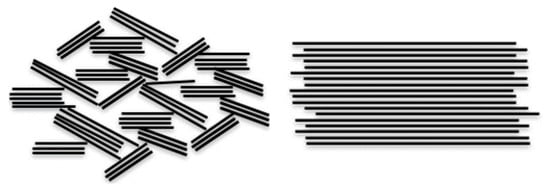 Currently, the most common commercial anode materials are based on carbon. Carbon is cheap, has a low delithiation potential vs. Li/Li, high Li diffusivity, high electrical conductivity and relatively low volume changes during lithiation and delithiation. Carbon anode materials can be divided into graphitic carbons and hard carbons []. Graphite is a three-dimensional ordered crystal with large graphite grains and a density of 2.26 g/cm []. It is a very stable allotrope of carbon. During battery operation, a Li atom is intercalated between the graphite layers to form an intercalation compound (i.e., LiC). The surface most exposed to the electrolyte is the basal plane, but the Li-ions predominantly intercalate into the graphene layers through the edge planes which are normal to the graphene layers [,]. During the intercalation of Li, the graphitic particles undergo uniaxial strain along the edge planes []. Hard carbon or “non-graphitized carbon” consists of two dimensional “ordered” graphene sheets, which are randomly stacked. The structure of both hard carbon and graphite are schematically shown in Figure 2. Its density is between 1.4 and 1.8 g/cm and is smaller than graphite []. The SEI layer that is formed on the carbon anode depends on the properties of the carbon/graphite. Important factors are the degree of crystallinity, basal-to-edge-plane ratio, particle and pore size, and surface chemical composition. A high degree of graphite crystallinity is preferred for high energy LIB anodes [], but the strains during the intercalation of Li in the graphitic particle may damage the SEI and reduce the cell’s cycle life. On the other hand, SEI on hard carbon is thicker, due to the accumulation of electrolyte-reduction products in surface voids []. Moreover, hard carbon has a higher fraction of exposed edge planes and therefore an increased quantity of SEI formed in the first cycles [].