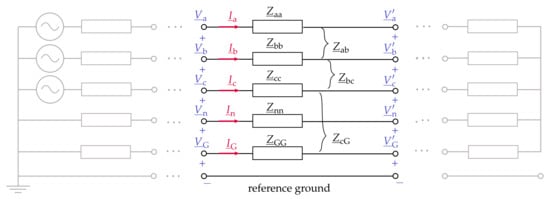 Five-conductor line model, including the ground return path, based on References [,].