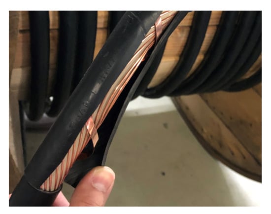 - Klaus Faber AG. NAYCWY 03X50SE/50 SW. Available online: https://shop.faberkabel.de/Starkstromkabel-1-30-kV/Niederspannungskabel/Starkstromkabel-NAYCWY/090206.html (accessed on 5 May 2020).