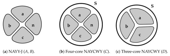 - elektro4000.de. Available online: https://www.elektro4000.de/Kabel-Leitungen/Kabel/Starkstromkabel/Verschiedene-Diverse-K-L-NAYY-J-4x150-SE-Eca-S-NAYY-J-4x150-SE-Eca::4302.html (accessed on 6 March 2020).