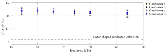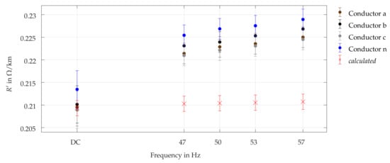 However, when assuming mutual inductances to be symmetrical and applying symmetrical components, line models can be described by three-dimensional diagonal phase impedance matrices, which greatly simplify load flow calculations or impedance estimation methods [,,]. Using these reduced models only requires knowledge of four parameters: line resistance and reactance in both positive and zero components. Authors, like Oeding and Oswald [], provide tables with corresponding reference values for different German low voltage cable types, yet pointing out that these parameters are originally intended for rough calculations of minimum and maximum fault currents and, thus, not necessarily suitable for accurate modeling of low voltage grids.